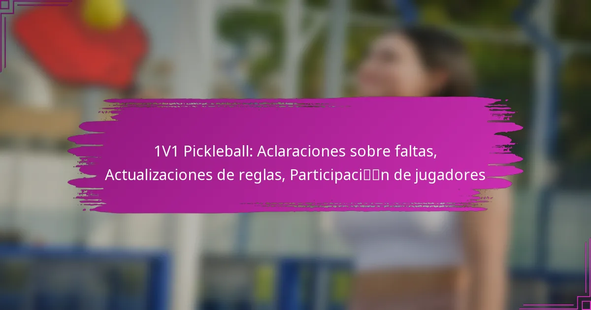 Las últimas actualizaciones de reglas para el pickleball 1V1 se centran en aclarar las faltas, mejorar la participación de los jugadores y adaptarse a los comentarios de la comunidad. Estos cambios tienen como objetivo mejorar la experiencia general del juego y asegurar una competencia justa.