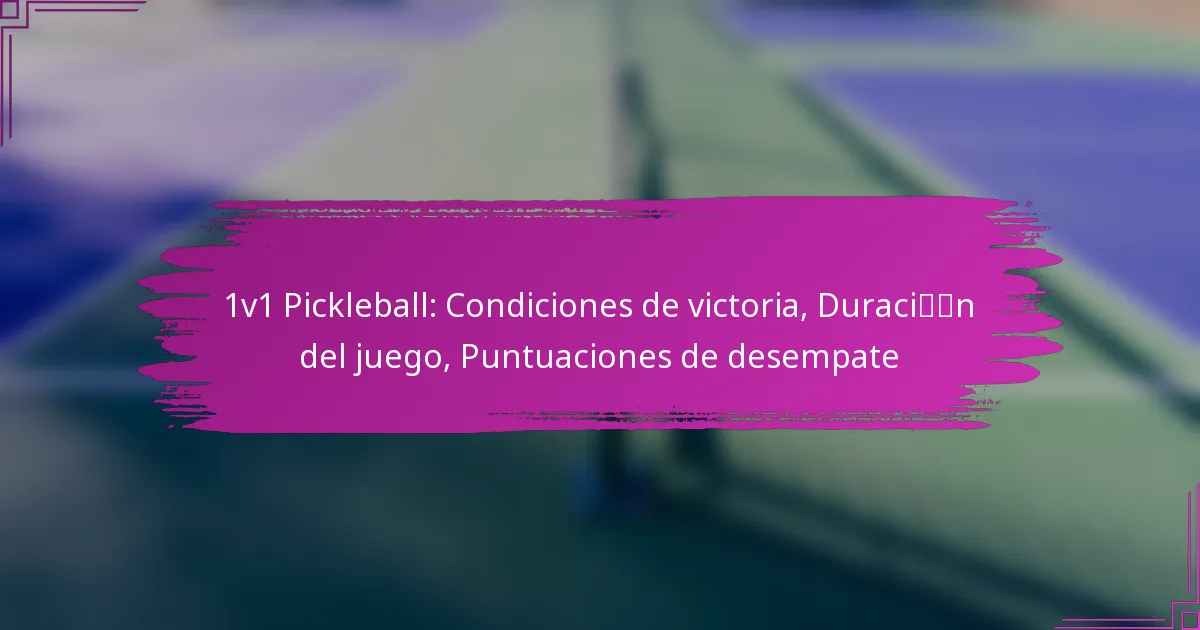 En el pickleball 1v1, las condiciones de victoria giran principalmente en torno a marcar puntos para alcanzar un total predeterminado, típicamente 11 o 15, asegurando un margen de al menos dos puntos. Los jugadores pueden ganar ya sea por el método de puntuación tradicional o por el método de puntuación por rally, cada uno influyendo en la dinámica y estrategias del juego.
